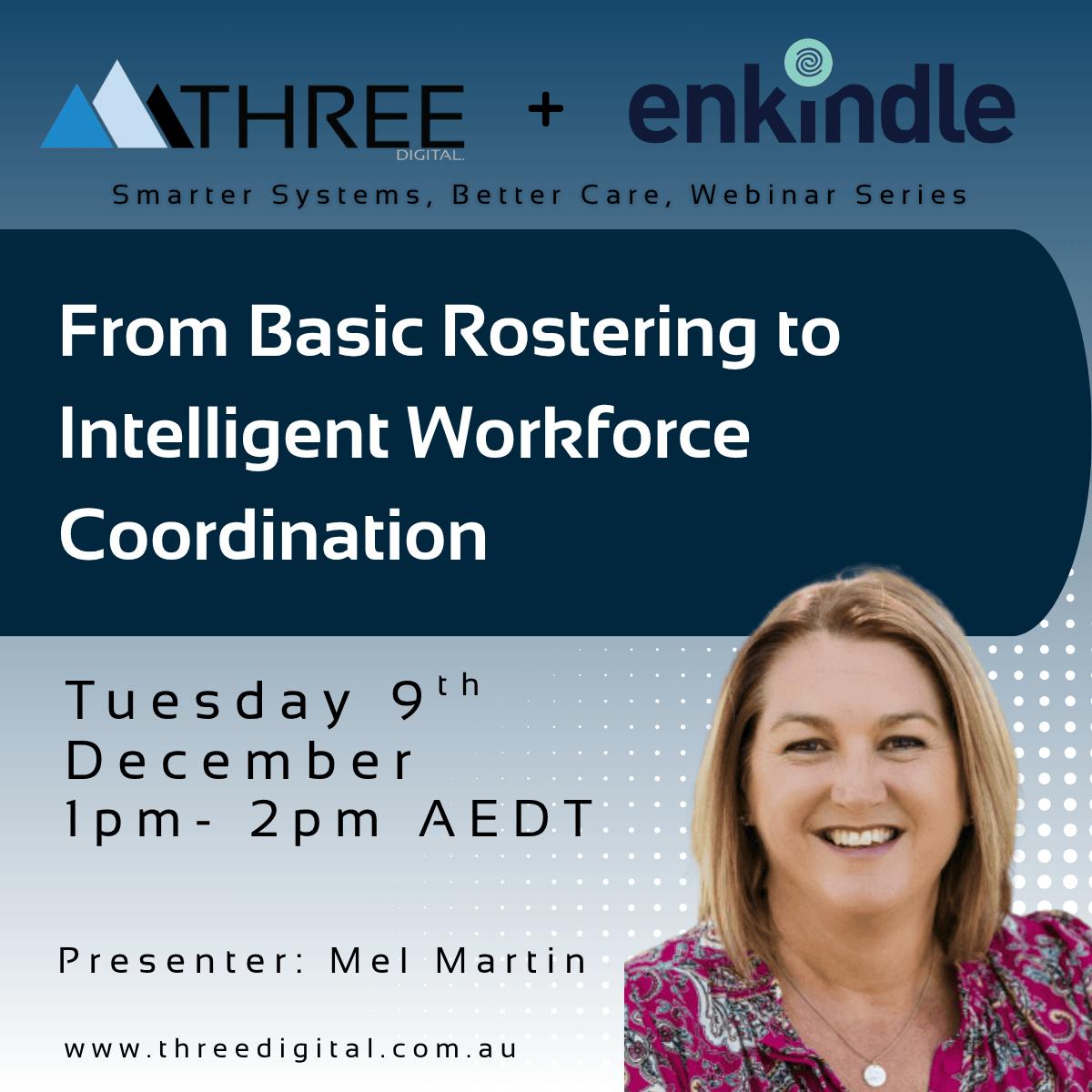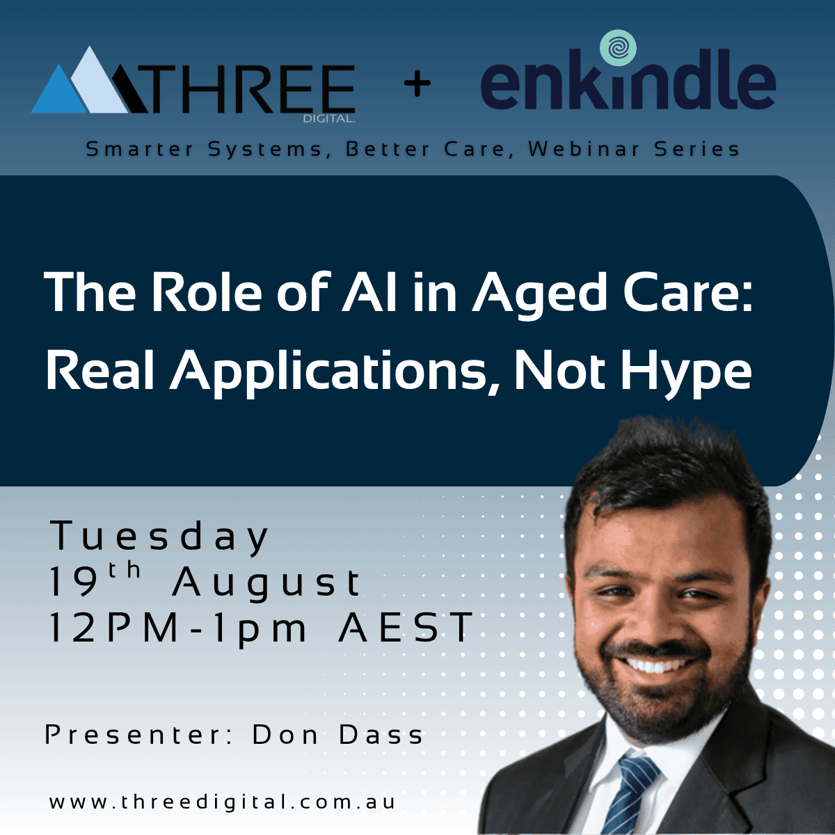 THREEDIGITAL webinars are designed to help aged care providers, executives, and frontline leaders navigate the changing world of technology with confidence. Each session delivers bite-sized, easy-to-understand insights on key digital trends shaping aged care — from AI and client systems to rostering, cybersecurity, and digital transformation. These webinars are practical, non-technical, and focused on real-world application, giving you the clarity and confidence to make better decisions for your organisation and the people you support.